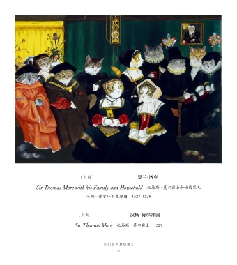 (上图)Rowland Lockey Sir Thomas More with his Family and Household 托马斯 · 莫尔爵士和他的家人 汉斯 · 荷尔拜因复原图 1527–1528 (对页)Hans Holbein Sir Thomas More 托马斯 · 莫尔爵士 1527 如果名画都是猫 2 47