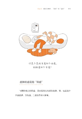 Part 2 肥胖分两种:“实胖”和“虚胖” 013 你是不是能坐着就不站着, 能躺着就不坐着? 虚胖的虚是指“阳虚” 与肥胖相关的阳虚,最容易发生的部位在脾、肾,也就是中 医说的脾、肾阳虚,二者经常相互影响。