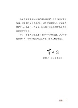 如果大家能够在厨房就把身体调理好,让身体不被疾病 所困,或者刚开始出现症状时,就把它调理过来,这就是在 保护自己,也是自己的福分,因为您不会让疾病有机会发展 到更重的阶段了。 所以,希望大家能通过本书多学学养生知识,学学药食 同源的品种,学学在厨房里怎么养生、怎么去保护自己。 2022 年 1 月 6 日于三亚 前 言 3