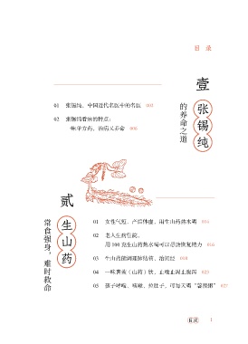 目 录 壹 张锡纯 的养命之道 01 张锡纯,中国近代名医中的名医 002 02 张锡纯看病的特点: 一味单方药,治病又养命 006 贰 生山药 常食强身,难时救命 01 女性气短、产后体虚,用生山药熬水喝 014 02 老人生病住院, 用 100 克生山药熬水喝可以帮助恢复精力 016 03 生山药能调理肺结核、治闭经 018 04 一味薯蓣(山药)饮,止喘止渴止腹泻 023 05 孩子哮喘、咳嗽、拉肚子,可每天喝“薯蓣粥” 027 目 录 1