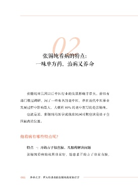 02 张锡纯看病的特点: 一味单方药,治病又养命 张锡纯对民国以后中医行业的发展影响非常大。曾经有 部门做过调研,问了一些有名的老中医,谁在近代中医事业 发展过程中影响最大,大概有 80% 的老中医写的是张锡纯。 也就是说,张锡纯的医学成就在民国时期应该是处于全 国最高的位置。 他看病有哪些特点呢? 特点一:开的方子很直接,几服药解决问题 张锡纯看病的效果非常好,给患者开的方子非常直接, 006 养命之方:罗大伦讲名医张锡纯传家食疗方