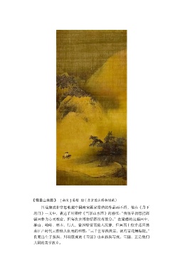 《雪景山水图》 [ 南宋 ] 梁楷 绘 (东京国立博物馆藏) 川端康成非常想收藏中国南宋画家梁楷的作品而不得,他在《月下 的门》一文中,表达了对梁楷《雪景山水图》的感叹:“我很早就想把那 幅画作为心灵粮食,但每次去博物馆都没有缘分。”在梁楷的这幅画中, 雄山、峻岭、林木、行人,皆因停雪而陷入沉静,但画面上似乎还回荡 着江户时代云游僧人良宽的和歌:“三千世界淡淡雪,犹有雪花舞蹁跹。” 良宽出生于新潟,川端康成的《雪国》也在新潟写成。雪国,正是他们 共同的美学故乡。