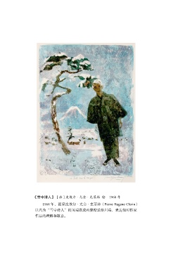 《雪中诗人》 [ 法 ] 皮埃尔 · 尤金 · 克莱林 绘 1968 年 1968 年,画家皮埃尔 · 尤金 · 克莱林(Pierre Eugene Clerin) 以名为“雪中诗人”的川端康成画像赠送给川端,表达他对作家 作品的理解和敬意。