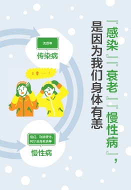 ﹃感染﹄﹃衰老﹄﹃慢性病﹄ 是因为我们身体有恙 流感等 传染病 不要 ...... ! 癌症、动脉硬化、 阿尔茨海默病等 慢性病 ,