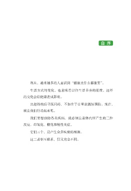 自ᅠ序 现在,越来越多的人意识到“健康比什么都重要”。 生活方式的变化,也意味着以往生活节奏的崩溃。这样 的变化会给健康造成影响。 比起得病后寻医问药,不如在平日里就做好预防。现在, 就让我们行动起来吧。 我们要想预防各类疾病,就必须注意体内所产生的三种 反应,即氧化、糖化和慢性炎症。 它们三个,是产生众多疾病的根源。 这三者相互联系,但又完全不同。