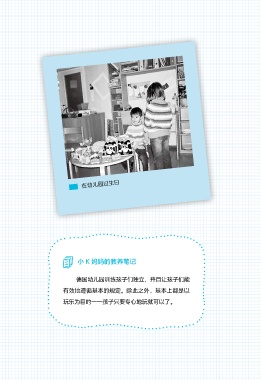 ■ 在幼儿园过生日 小 K 妈妈的教养笔记 德国幼儿园训练孩子们独立,并且让孩子们能 有效地遵循基本的规定。除此之外,基本上都是以 玩乐为目的——孩子只要专心地玩就可以了。 036 没有边界的教室