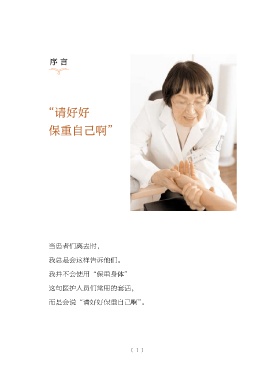 序 言 “请好好 保重自己啊” 当患者们离去时, 我总是会这样告诉他们。 我并不会使用“保重身体” 这句医护人员们常用的套话, 而是会说“请好好保重自己啊”。 〔 1 〕