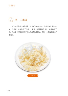 美食课三 1 君:二米饭 天气还是湿热,我们的君,主食可以选择米饭,也可以加点儿小米, 蒸个二米饭。这也是为了主菜——剁椒主要用来做个鱼头,这样的话下 饭。但是也有的同学喜欢弄点儿面或者贴个饼子,都行,主食就不做过多 强调了。 二米饭 206