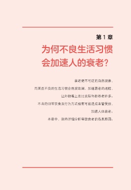 第1章 为何不良生活习惯 会加速人的衰老? 衰老是不可逆的自然现象, 而某些不良的生活习惯会推波助澜、加速衰老的进程, 让外貌看上去比实际年龄苍老许多。 不当的日常饮食及行为方式极有可能造成血管受损, 加速人体衰老。 本章中,我将详细分析导致衰老的各类原因。 序章 外表显衰老的人和外表显年轻的人有何不同? 7