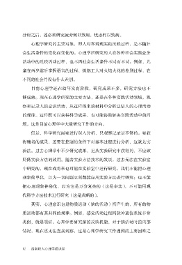 够成熟。现在心理学研究的主要方法,还是在各种实践活动领域,观