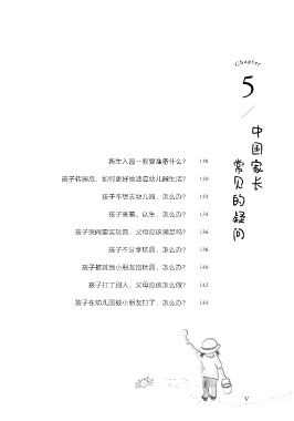 目 录 Chapter 5 中国家长 常见的疑问 新生入园一般要准备什么? 128 孩子转园后,如何更好地适应幼儿园生活? 130 孩子不想去幼儿园,怎么办? 132 孩子害羞、认生,怎么办? 134 孩子哭闹要买玩具,父母应该满足吗? 136 孩子不分享玩具,怎么办? 138 孩子被其他小朋友抢玩具,怎么办? 140 孩子打了别人,父母应该怎么做? 142 孩子在幼儿园被小朋友打了,怎么办? 144 V