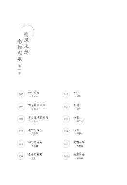 南风未起 念你成疾 第一章 西山的月 春野 002 043 - 沈从文 - 陆蠡 你为什么不来 无题 007 047 - 许地山 - 老舍 009 看灯有味忆儿时 051 初恋 - 张恨水 - 周作人 012 第一个恋人 054 花巷 - 章衣萍 - 冯骥才 026 初恋的自白 057 迈耶一家 - 胡也频 - 季羡林 水样的春愁 初恋杂感 034 061 - 郁达夫 - 梁晓声
