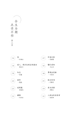 余生为期 此情不移 第三章 笑 不速之客 116 137 - 许地山 - 郑振铎 爱人,我的失眠让你落泪 婚礼现场 118 143 - 郁达夫 - 肖复兴 120 红豆 148 费城浪漫曲 - 陆蠡 - 肖复兴 123 窗帘 153 街头的吻 - 陆蠡 - 冯骥才 125 爱情篇 158 老夫老妻 - 张晓风 - 冯骥才 姻缘 人间自有真情在 131 162 - 史铁生 - 季羡林