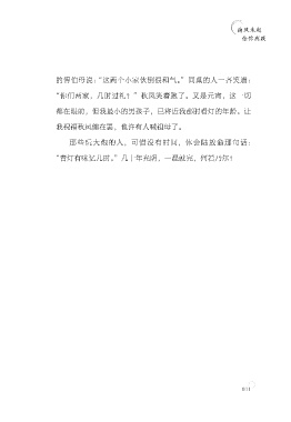 南风未起 念你成疾 的傅伯母说:“这两个小家伙倒很和气。”同桌的人一齐笑道: “你们两家,几时过礼?”秋凤笑着跑了。又是元宵,这一切 都在眼前,但我最小的男孩子,已将近我那时看灯的年龄。让 我祝福秋凤健在罢,也许有人喊祖母了。 那些玩大炮的人,可惜没有时间,体会陆放翁那句话: “青灯有味忆儿时。”几十年光阴,一混就完,何若乃尔! 011
