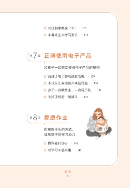 对任何事都说“不” · 113 不尊重甚至辱骂家长 · 115 7 正确使用电子产品 第 章 和孩子一起制定使用电子产品的规则 沉迷于电子游戏或看电视 · 129 不让女儿看动画片来惩罚她 · 131 孩子一边做作业,一边玩手机 · 134 关掉手机是一场战斗 · 136 8 家庭作业 第 章 用寓教于乐的方式, 提高孩子的学习动力 做作业时分心 · 142 对学习不感兴趣 · 145 目 录 ·5·