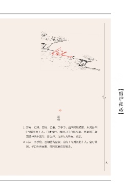 【围炉夜话】 注释 1 苏秦:己姓,苏氏,名秦,字季子,战国时纵横家,东周洛阳 (今属河南)人。口才极佳,游说六国合纵抗秦,使秦国不敢 窥函谷关十五年,后至齐,与齐大夫争宠,被杀。 2 石崇:字季伦,晋朝著名富豪,南皮(今属河北)人。富可敌 国,平日生活豪奢,终因此遭忌而被杀。 九