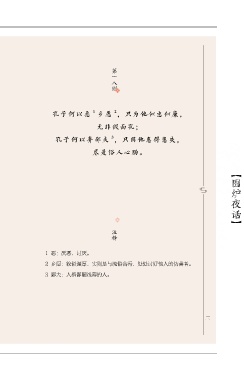 第一八则 1 2 孔子何以恶 乡愿 ,只为他似忠似廉, 无非假面孔; 3 孔子何以弃鄙夫 ,只因他患得患失, 尽是俗人心肠。 【围炉夜话】 注释 1 恶:厌恶,讨厌。 2 乡愿:貌似谨厚,实则是与流俗合污,处处讨好他人的伪善者。 3 鄙夫:人格鄙陋浅薄的人。 二三
