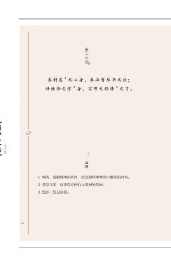 第二六则 1 求科名 之心者,未必有琴书之乐; 3 2 讲性命之学 者,不可无经济 之才。 【围炉夜话】 注释 1 科名:原指科举的名目,此处指科举考试中取得的功名。 2 性命之学:讲求生命形而上境界的学问。 3 经济:经世济民。 三二