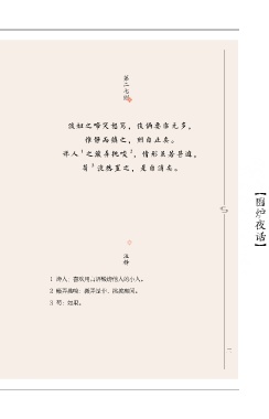 第二七则 泼妇之啼哭怒骂,伎俩要亦无多, 惟静而镇之,则自止矣。 2 1 谗人 之簸弄挑唆 ,情形虽若甚迫, 3 苟 淡然置之,是自消矣。 【围炉夜话】 注释 1 谗人:喜欢用言语毁谤他人的小人。 2 簸弄挑唆:搬弄是非,挑拨离间。 3 苟:如果。 三三