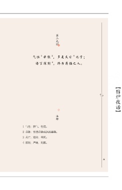 第二九则 1 2 3 气性 乖张 ,多是夭亡 之子; 4 语言深刻 ,终为薄福之人。 【围炉夜话】 注释 1 气性:脾气,性情。 2 乖张:性情乖僻或执拗暴躁。 3 夭亡:短命,早死。 4 深刻:严峻,刻薄。 三五