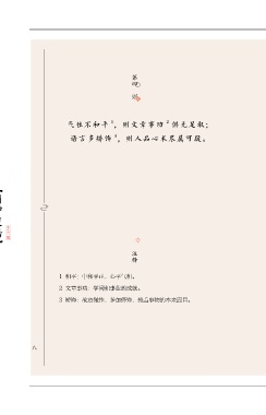 第四 ○ 则 1 2 气性不和平 ,则文章事功 俱无足取; 3 语言多矫饰 ,则人品心术尽属可疑。 【围炉夜话】 注释 1 和平:中和平正,心平气和。 2 文章事功:学问和事业的成就。 3 矫饰:故意做作,多加修饰,掩盖事物的本来面目。 四八