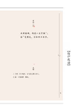 第四一则 1 误用聪明,何若一生守拙 ; 2 滥 交朋友,不如终日读书。 【围炉夜话】 注释 1 守拙:安于现状,不与他人费心争斗。 2 滥:不加选择,随意。 四九
