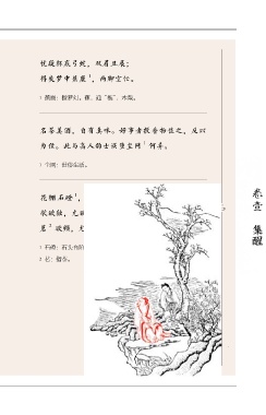 忧疑杯底弓蛇,双眉且展; 1 得失梦中蕉鹿 ,两脚空忙。 1 蕉鹿:指梦幻。蕉,通“樵”,木柴。 名茶美酒,自有真味。好事者投香物佐之,反以 1 为佳。此与高人韵士误堕尘网 何异。 1 尘网:世俗生活。 卷壹 1 花棚石磴 ,小坐微醺。 歌欲独,尤欲细; 集醒 2 茗 欲频,尤欲苦。 1 石磴:石头台阶。 2 茗:指茶。 二一