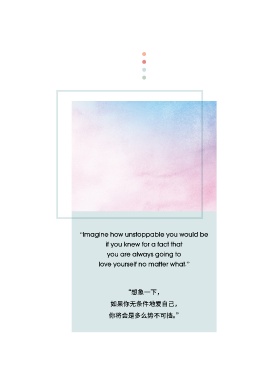 “Imagine how unstoppable you would be if you knew for a fact that you are always going to love yourself no matter what.” “想象一下, 如果你无条件地爱自己, 你将会是多么势不可挡。”
