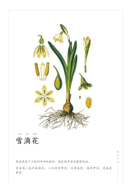 xu0 d~ hu` 雪滴花 0 0 雪滴花原产于欧洲中部和南部,现在很多国家都有栽培。 0 雪滴花一般早春萌发,三四月份开花,不畏春寒,傲然开放,花语是 希望。
