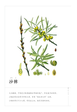 sh` j! 沙棘 0 0 又名醋柳。中国是沙棘属植物分布面积最广、种类最多的国家。 0 沙棘的果实含有多种维生素,享有“维生素宝库”之称。 沙棘的果实可以入药,有化痰止咳、健胃消食的功效。