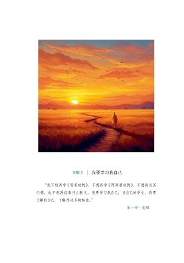 觉醒 3 我要学习我自己 “我不想再学《耶柔吠陀》,不想再学《阿闼婆吠陀》,不想再当苦 行僧,也不想再信奉什么教义。我要学习我自己,当自己的学生,我要 了解我自己,了解悉达多的秘密。” 第一部·觉醒