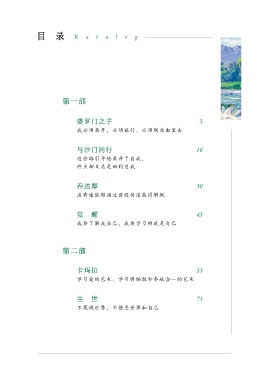 目 录 K a t a l o g 第一部 婆罗门之子 3 我必须离开,必须旅行,必须到自由里去 与沙门同行 16 这些路引导他离开了自我, 终点却又总是回到自我 乔达摩 30 没有谁能够通过讲经传道获得解脱 觉 醒 43 我要了解我自己,我要学习的就是自己 第二部 卡玛拉 53 学习爱的艺术,学习将牺牲和奉献合一的艺术 尘 世 73 不蔑视世界,不憎恶世界和自己