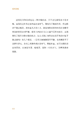 嘘寒问暖 虚弱的身体内部也是一种平衡状态,只不过是较低水平的平 衡。而我们进补无论是补血还是补气,都是为了提高体质,将过低 的平衡点提高。进补前几天的上火,就是身体还没和补药给身体带 来的新高度达到平衡,很多人因此以为自己虚不受补而放弃,这就 错失了提升身体功能的机会。怎么才能让身体迈向新平衡的时候平 稳过渡呢?有几个建议:一是可以调调脾胃开开路,在药师指导下 选择归脾丸、参苓白术颗粒或红参补气,阿胶补血。还可以搭配清 凉的茶饮,比如麦冬茶、菊花茶,缓解一时的火气,为顺利进补 铺路。 008