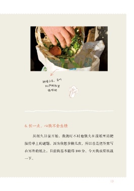 把橘子 皮、菜叶 放进肥料袋 做堆肥 6. 忙一点,心就不会生锈 从很久以前开始,我就时不时地做夹在报纸里的健 脑传单上的谜题。因为我想多做几次,所以总是把答案写 在另外的纸上。目前我基本能得 100 分。今天我也要挑战 一下。 13