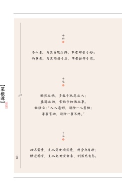 十六 与人者,与其易疏于终,不若难亲于始; 御事者,与其巧持于后,不若拙守于前。 十七 【菜根谭】 酷烈之祸,多起于玩忽之人; 洪应明 盛满之功,常败于细微之事。 故语云:“人人道好,须防一人着恼; 事事有功,须防一事不终。” 十八 功名富贵,直从灭处观究竟,则贪恋自轻; 三四 横逆困穷,直从起处究由来,则怨尤自息。
