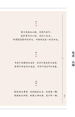 四二 解斗者助之以威,则怒气自平; 惩贪者济之以欲,则利心反淡。 所谓因其势而利导之,亦救时应变一权宜法也。 卷贰 四三 应酬 市恩不如报德之为厚,雪忿不若忍耻之为高, 要誉不如逃名之为适,矫情不若直节之为真。 四四 救既败之事者,如驭临崖之马,休轻策一鞭; 四九 图垂成之功者,如挽上滩之舟,莫少停一棹。