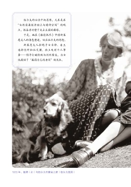 伍尔夫的女性平权思想,尤其是其 “女性需要经济独立与精神空间”的观 点,振奋并疗愈了失去庄园的薇塔。 于是,她在《激情耗尽》中借斯莱 恩夫人的角色塑造,回应伍尔夫的思想。 斯莱恩夫人拒绝子女安排、自主 选择住所和社交圈,独立处理个人事 务—— 倡导打破阶级与性别壁垒,为女 性提供了“赢得自己的房间”的范本。 1933 年,薇塔(右)与伍尔夫在蒙克之家(伍尔夫故居)
