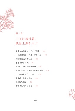 第2章 日子过着过着, 就爱上那个人了 那个女人温暖的名字,李熙静 · 048 日子过着过着,就爱上那个人了 · 053 伤痛变成花朵的时间 · 058 爸爸喜欢长头发 · 064 妈妈说,她也会感到孤单 · 069 对妈妈来说,女儿是怎样的存在呢 · 074 妈妈也有权拥有“角色” · 080 耀眼的、绽放的人生 · 087 有温度的真话 · 092 想要长久陪伴的心情 · 098 002