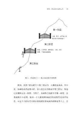 预热:现实世界如何运作 29 第一阶层 人脉、努力、运气或上天 赐予的才华和创造力 第二阶层 英语、入学考试、肢体语言、人脉、文化 背景、工作机会的获取 第三阶层 图三:阶层铁门——阻止阶层跃升的障碍 例如,从第三阶层跃升至第二阶层的一大障碍是英语。在印 度,如果你英语说得不好,旁人就会认为你属于第三阶层,你也 注定被困在这一阶层。当然了,如果你已经跻身于第一阶层,这 条规则并不适用。假如一个人能流利地说印度语但英语水平很 差,可这个人恰好是大权在握的政治家或成功的体育界人士,旁